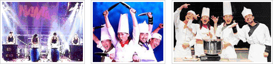 the first Korean non-verbal performance called ¡®Nanta¡¯. Nanta is a hybrid artwork, a combination of traditional Korean folk performance called ¡®Samulnori¡¯ and western form of performance. On the stage is a giant kitchen, and four cooks appear and start cooking dishes for a wedding reception. ![]() |
