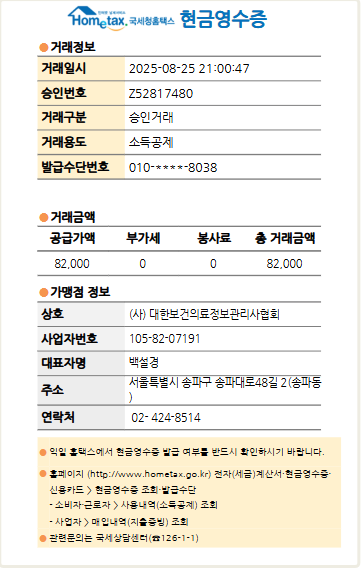 도서문의 | Re: 구매 영수증은 어떻게 받을 수 있나요? 페이지 정보 작성자 관리자6 작성일25-08-25 21:03 조회51회 관련링크 목록 본문 안녕하세요.대한보건의료정보관리사협회 사무국입니다. 요청하신 현금영수증 발행하여 첨부하여 드립니다. 감사합니다. 댓글목록 등록된 댓글이 없습니다. 목록